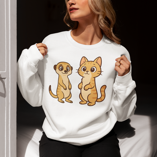Damen Sweatshirt Personalisiert - Stehende Katze mit Erdmännchen, sarkastisch