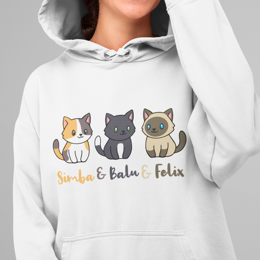 ST/ST Drummer Hoodie Personalisiert - Drei Individuelle Cartoon Katzen mit Namen